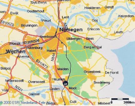 Bij stoplichten rechtdoor richting Mook tot viaduct.